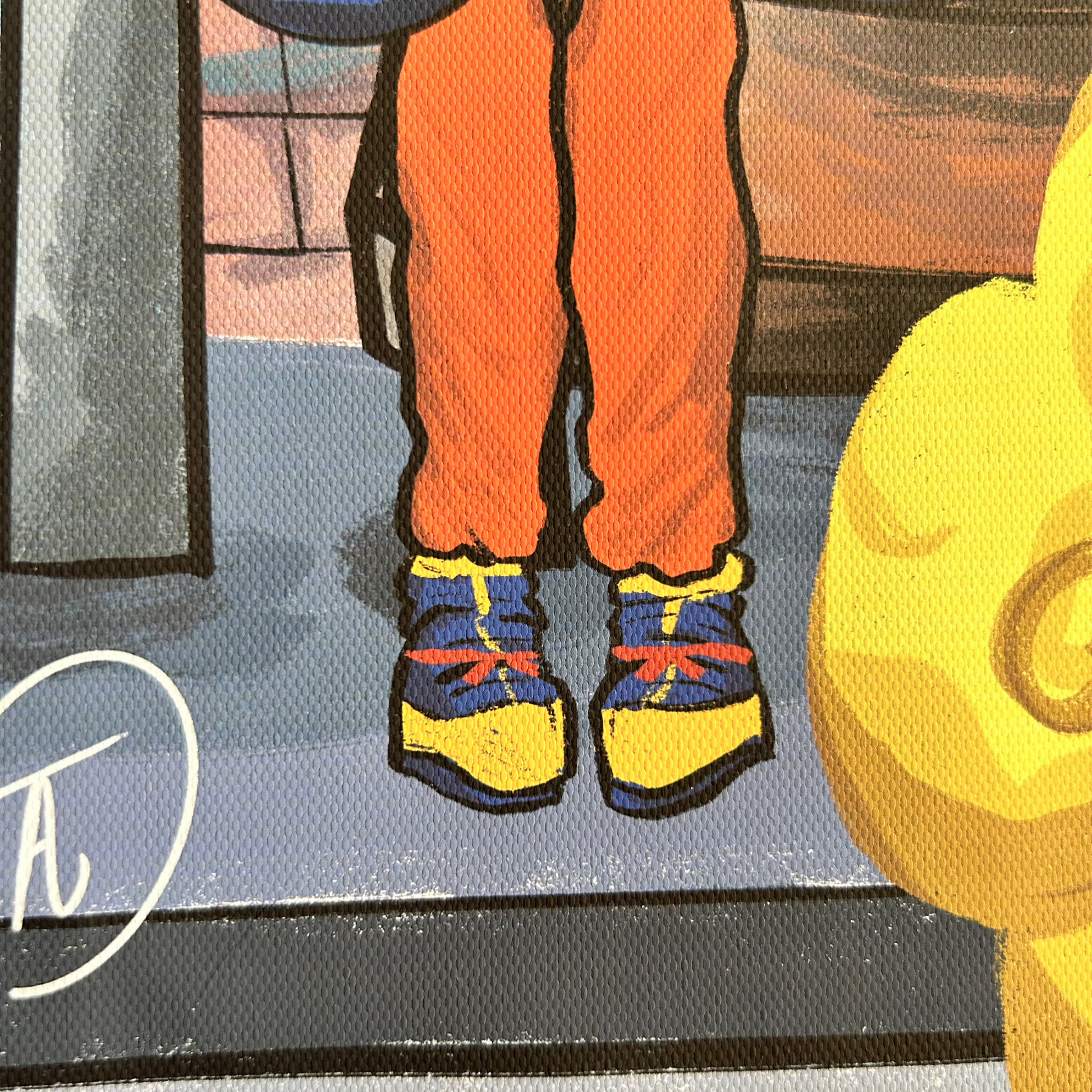Unleash the power of your walls with this stunning Goku world Poster, featuring the legendary Saiyan waiting for a ride at the bus stop instead of using other convenient transportation ways around him :D.